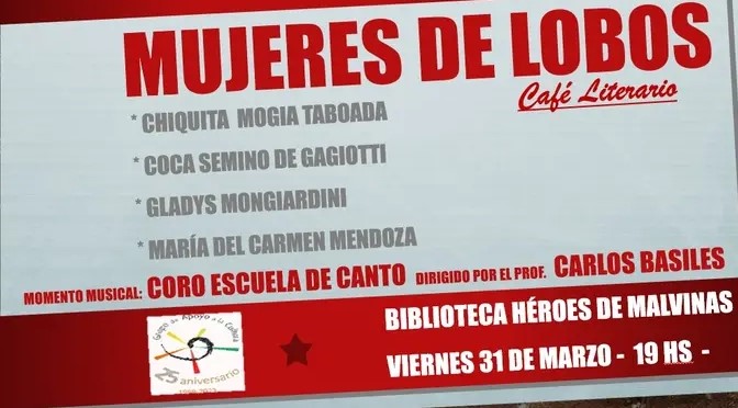 Página de inicioCulturalesGRUPO DE APOYO A LACULTURA REALIZA UN CAFE LITERARIO Culturales GRUPO DE APOYO A LACULTURA REALIZA UN CAFE LITERARIO Finalizando el Mes de la Mujer, el Grupo de Apoyo a la Cultura presenta un nuevo Café Literario:» MUJERES DE LOBOS» . Momento Musical: Coro Escuela de Canto Biblioteca Héroes de Malvinas Argentinas, dirigido por el Profesor Carlos Basiles Te esperamos el 31 de marzo a las 19 hs, en la Biblioteca Héroes de Malvinas para descubrirlas y ver cómo cada una de ellas tocó tu vida y la de la comunidad. Entrada libre y gratuita. Finalizando el Mes de la Mujer, el Grupo de Apoyo a la Cultura presenta un nuevo Café Literario:» MUJERES DE LOBOS» . Momento Musical: Coro Escuela de Canto Biblioteca Héroes de Malvinas Argentinas, dirigido por el Profesor Carlos Basiles. Te esperamos el 31 de marzo a las 19 hs, en la Biblioteca Héroes de Malvinas para descubrirlas y ver cómo cada una de ellas tocó tu vida y la de la comunidad. Entrada libre y gratuita. Navegación de entradas Entrada anteriorFALLECIMIENTOS Entrada siguienteFECHA 2 DE MENORES SABADO 1° DE ABRIL También podría gustarte Actualidad EDUCAR ES ENCENDER UNA VIDA CON OTRA VIDA El Cuarto Poder 21 octubre, 2024 Actualidad LA CIUDADANÍA DE LOBOS, SE DARÁ CITA EN ARÉVALO E IRIGOYEN ESTE JUEVES A LAS 20 HS. El Cuarto Poder 22 enero, 2025 Actualidad Muestra del artista RAMIRO GHIGLIAZZA. El Cuarto Poder 2 septiembre, 2024 Actualidad INFORME DE LA ASOCIACIÓN SANMARTINIANA El Cuarto Poder 24 mayo, 2024