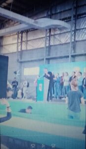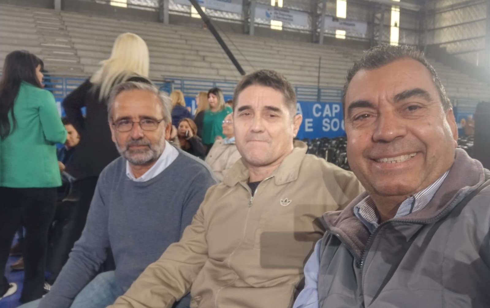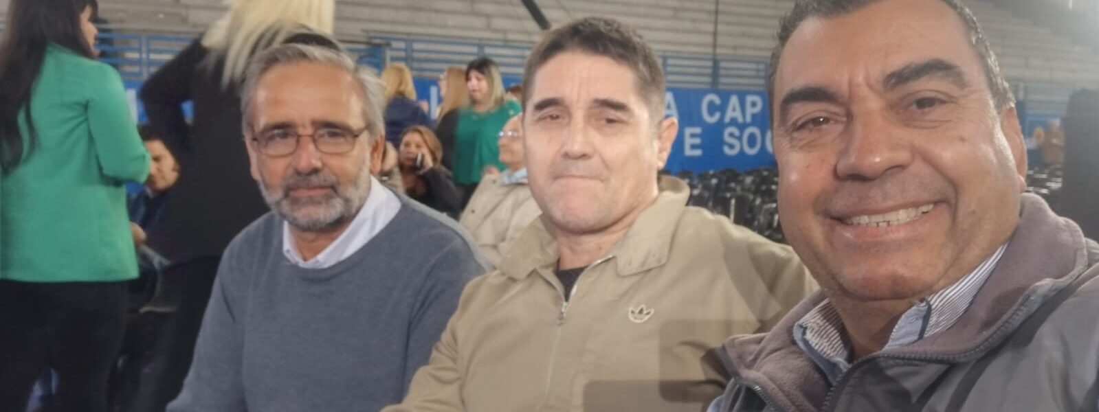 Los Congresales compañero Fabián Volpe , compañero Claudio Delia , acompañados por el Pte. del PJ Lobos compañero Gustavo Cavaleri en el Polideportivo Juan Domingo Perón .