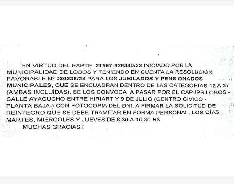 EL CENTRO DE JUBILIDADOS Y PENSIONADOS MUNICIPALES DE LOBOS, nos remitió la presente gacetilla para su difusión.