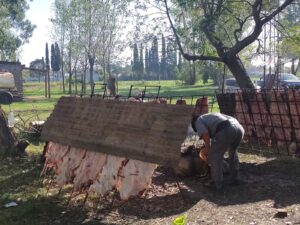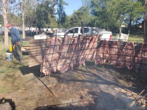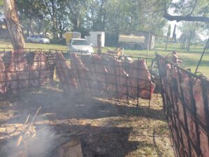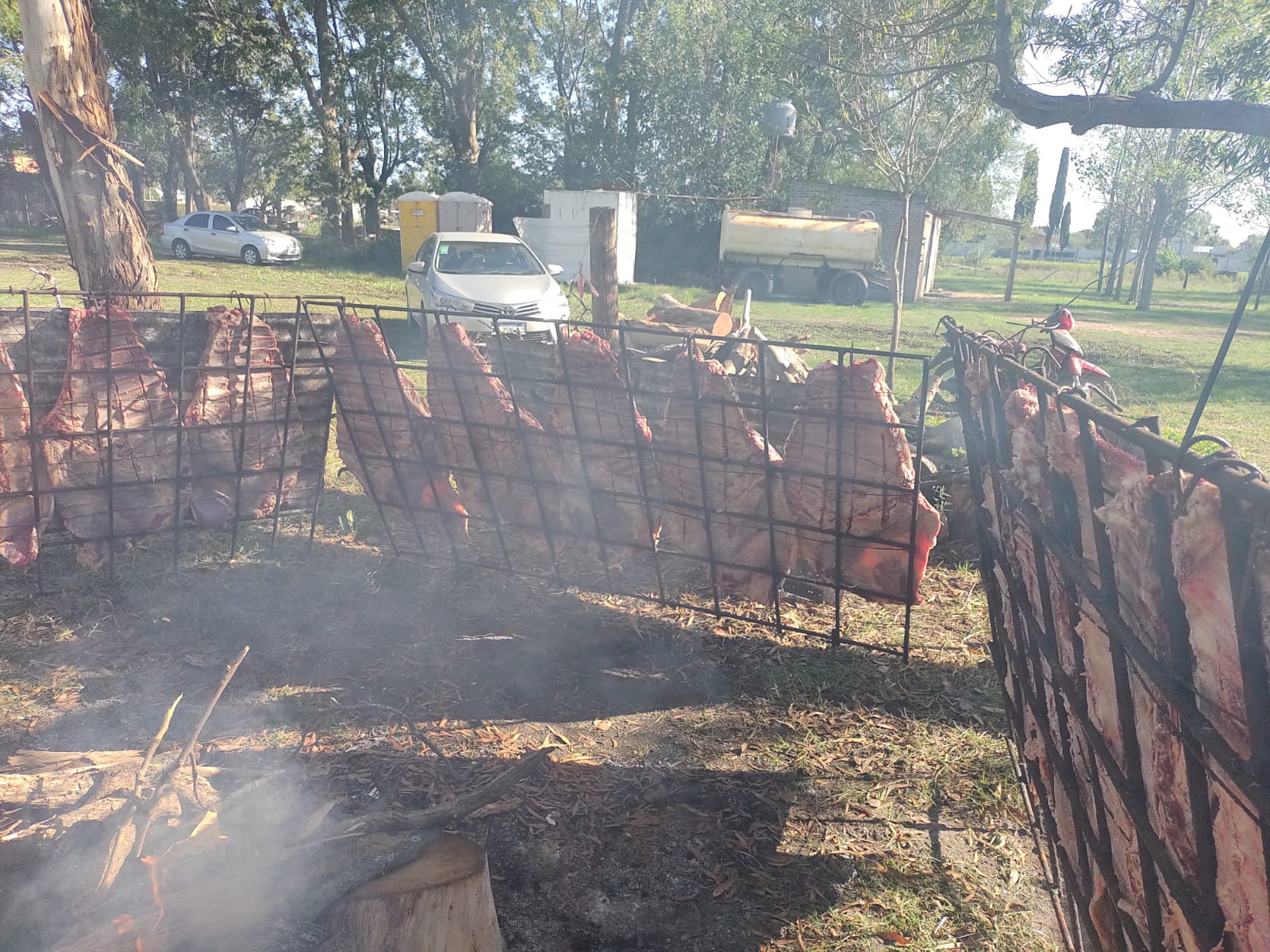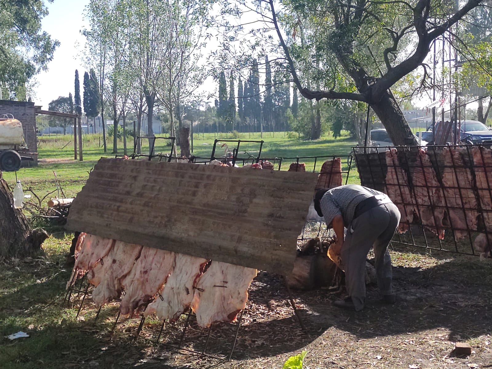 Ya con toda la carne en las estacas, y en el centro con los leños que comenzaban a arder, Mariscotti, Darío, Fernandez, Enrique Julio César, y Catriel Carboni se aprestaban a cuidar el almuerzo.