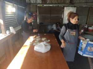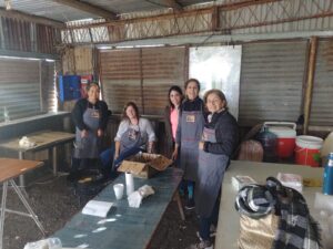 Luego de presentarnos a los asadores, nos invitó a pasar donde las damas preparaban las tortas fritas y empanadas. Norma, Teresa, Silvina, Ivana, Marita, Lucila y Lucrecia posaron para la foto.