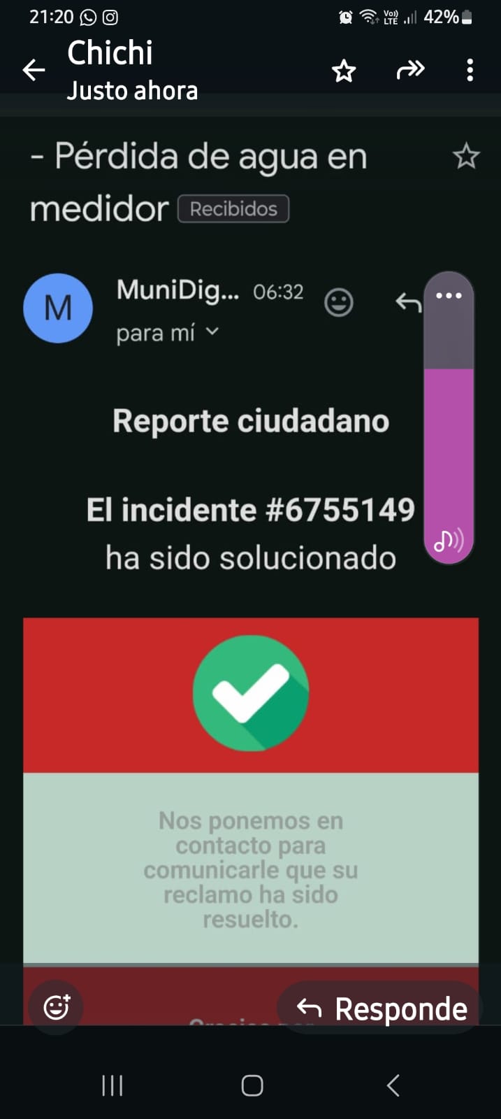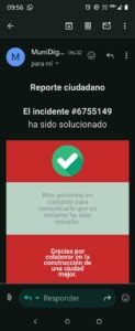 ¿Y por que se piensa en esto?, por que en el día de ayer, se recibió en los correos personales solicitados por el municipio, una comunicación oficial que el RECLAMO HABÍA SIDO ATENDIDO Y SOLUCIONADO.