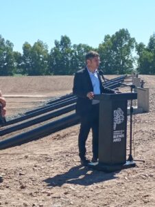 En su discurso al respecto, Kicillof hizo un relato del porqué de la obra, su historia y, detalles técnicos generales, realizó un relato de los basurales que se han ido cerrando en la provincia, siendo reemplazados por rellenos sanitarios.