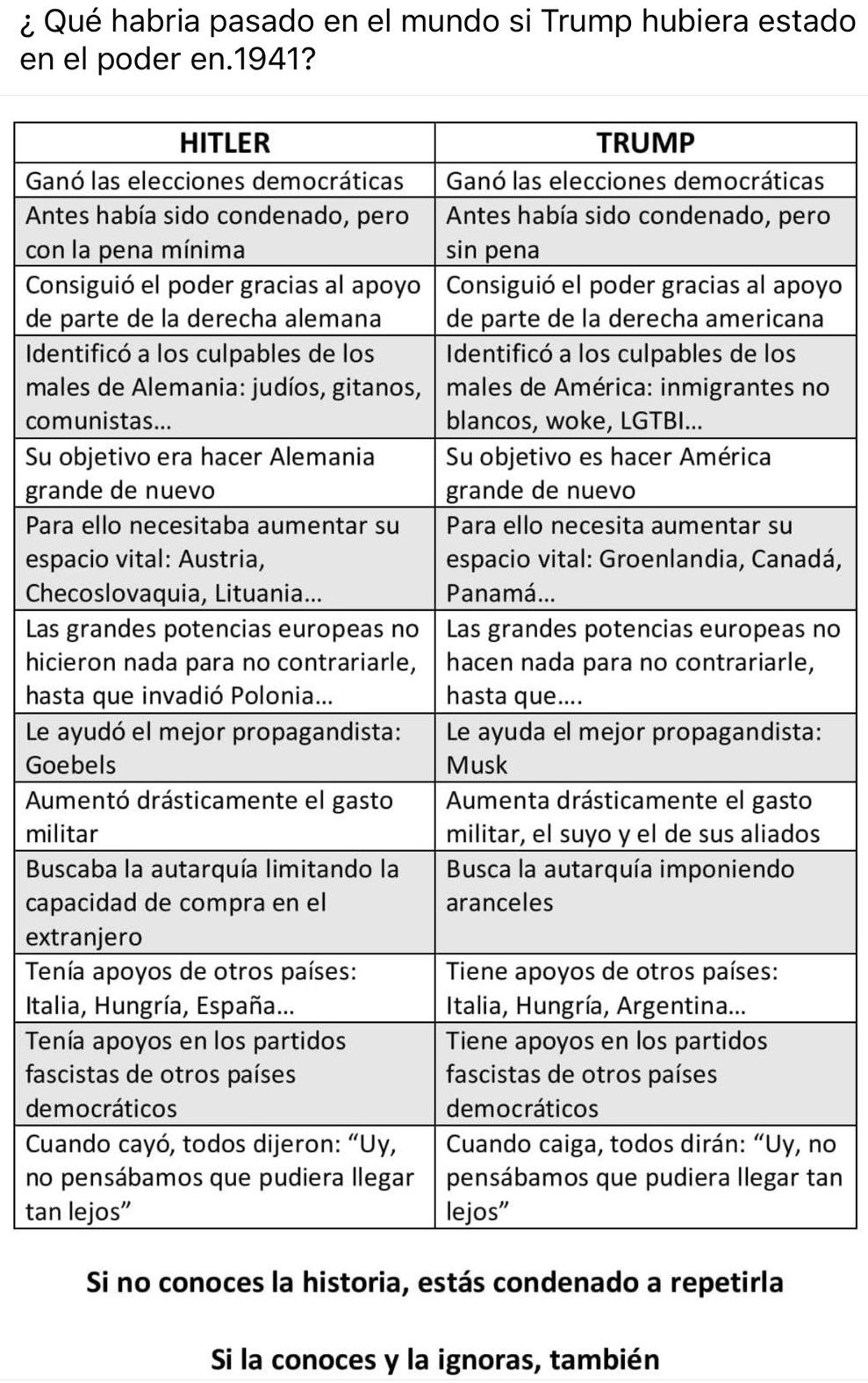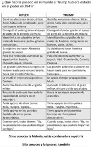 La siguiente, es una comparación que realiza un usuario de Facebook, sobre que habría pasado eN el mundo, si Trump hubiera estado en el poder en 1941.