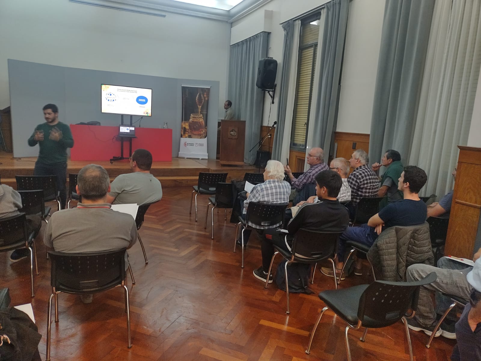Sin conocimiento específico sobre el tema, este cronista, sí pudo presenciar brevemente la brillante charla didáctica dl profesional ante un público sabedor del devenir diario. La charla fue de igual a igual ya que el orador también se dedica como apicultor.