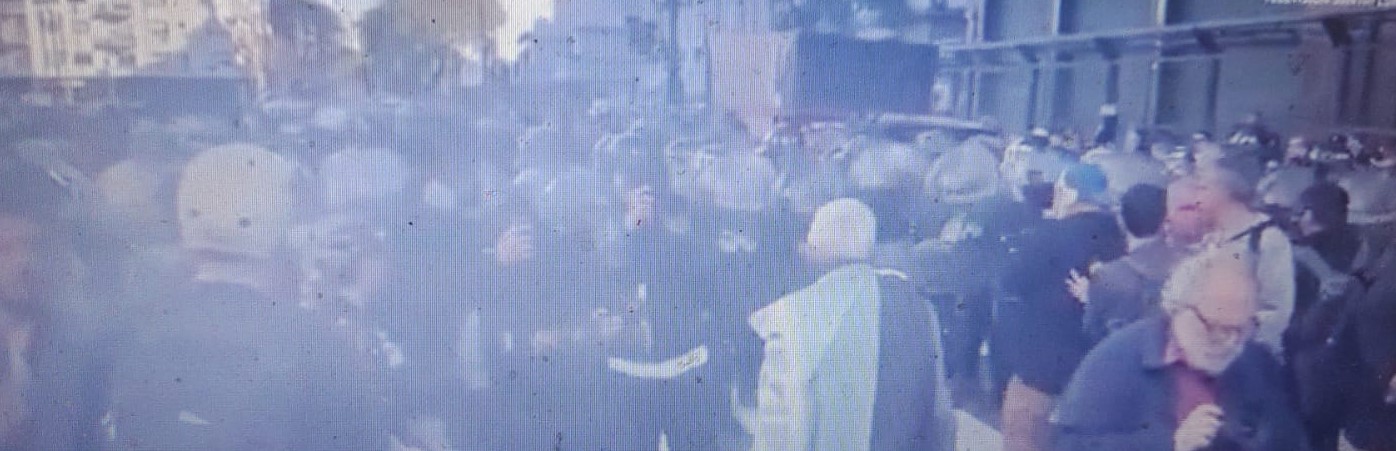 Cuando se llevaba ya más de una hora de concentración pacífica y algunas columnas comenzaban a trasladarse para Plaza de Mayo, comenzó la represión. Efectivos de la Policía Federal, la Gendarmería y la Prefectura cercaron el paso de los manifestantes y comenzaron a tirarles gas lacrimógeno.