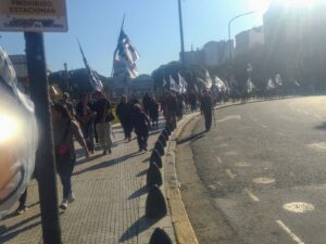 La concentración fue numerosa y variopinta en su concurrencia. Había organizaciones políticas y sindicales, pero también muchos jubilados que asistieron “sueltos” por fuera de las agrupaciones y se veía además a niños que acompañaban a sus abuelos o padres. Por otra parte, toda la zona de congreso estaba rodeada de personal policial, incluyendo motos, camionetas, camiones hidrantes y casi 800 efectivos.