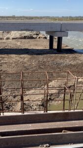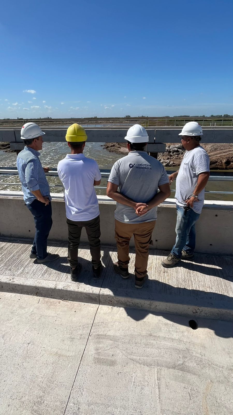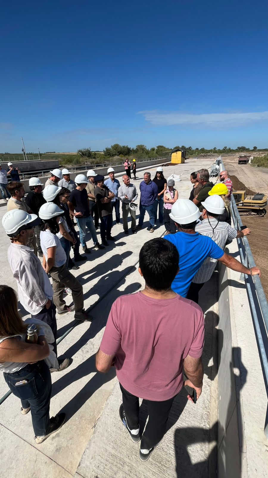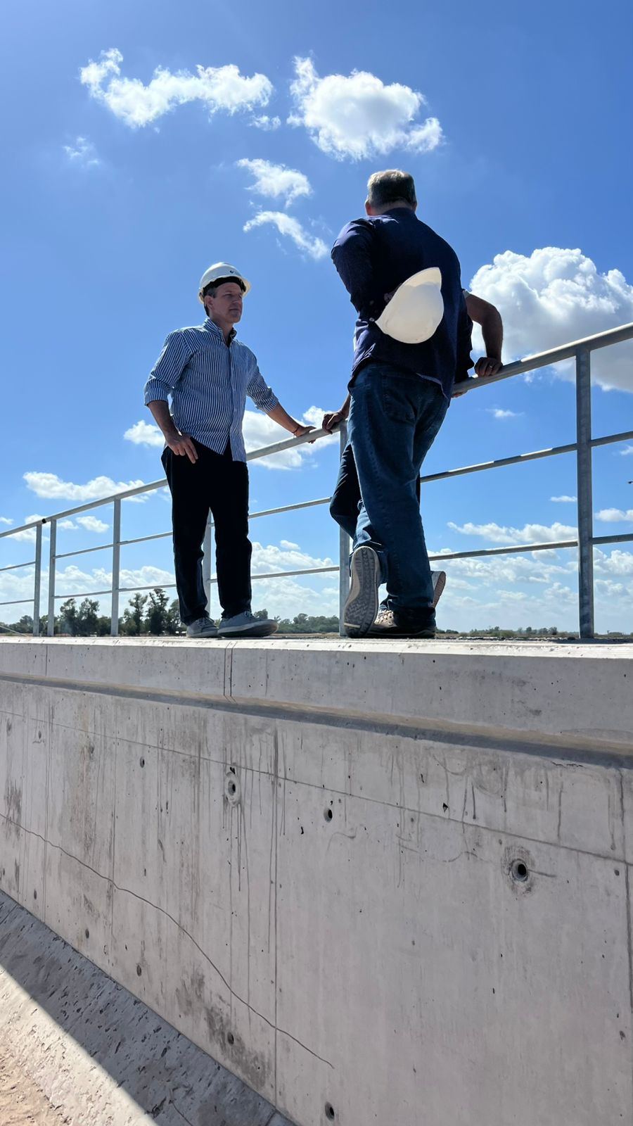 Durante la visita, el ingeniero Mario Borges, jefe de obra de los puentes del río Salado de la Dirección General de Hidráulica de la Provincia de Buenos Aires, explicó que se realizó una inspección técnica para mostrar el progreso de los trabajos.