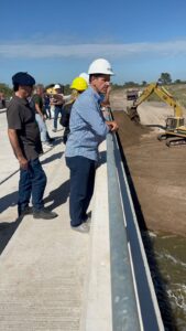 “Realizamos este recorrido junto a la gente de Infraestructura, de Hidráulica de la Provincia, del Banco Mundial y de la empresa Construere para ver el avance de una obra sumamente importante vinculada al dragado del río Salado y, en particular, a la finalización de los puentes que unen a las localidades de Lobos y Roque Pérez”, expresó.