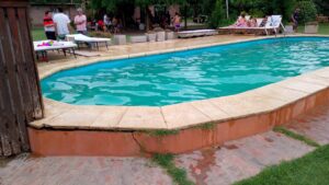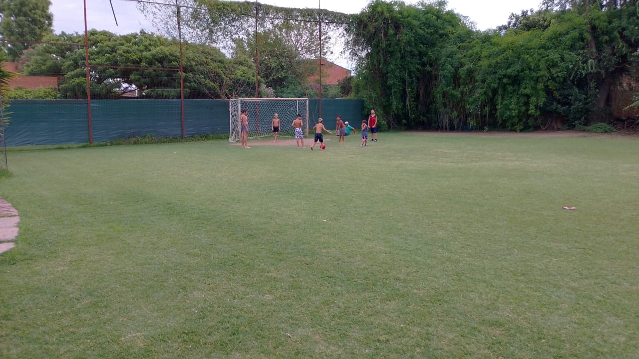 Una pelota llegó rodando a los pies de este cronista ni bien ingresó al predio. Un pequeñín, insistía por su devolución. Un poco más allá otro me mostraba un postre que tenía en sus manos. Al llegar al sector de la pileta, algunas niñas se zambullían en ella ante la atenta mirada de Ardiles, que insistí con que los más pequeños no se alejaran del borde de la misma.
