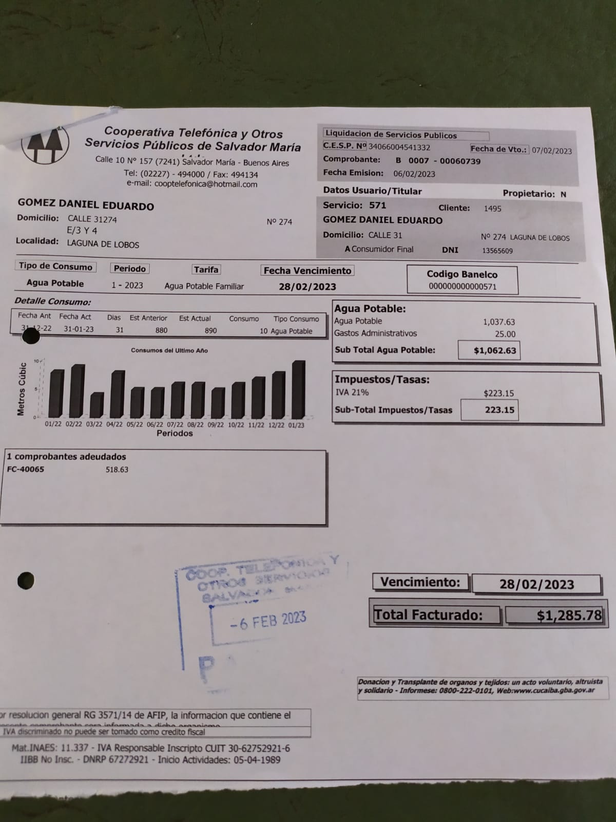 El reclamo no es solo de ellos, son otros varios vecinos a quienes les acontece lo mismo. Los reclamos van y vienen, y la Cooperativa, según nos cuentan, brilla por su ausencia de respuestas.