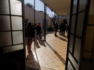 Cuando nos retirábamos la cola seguía creciendo y el ingreso de personas no cesaba.