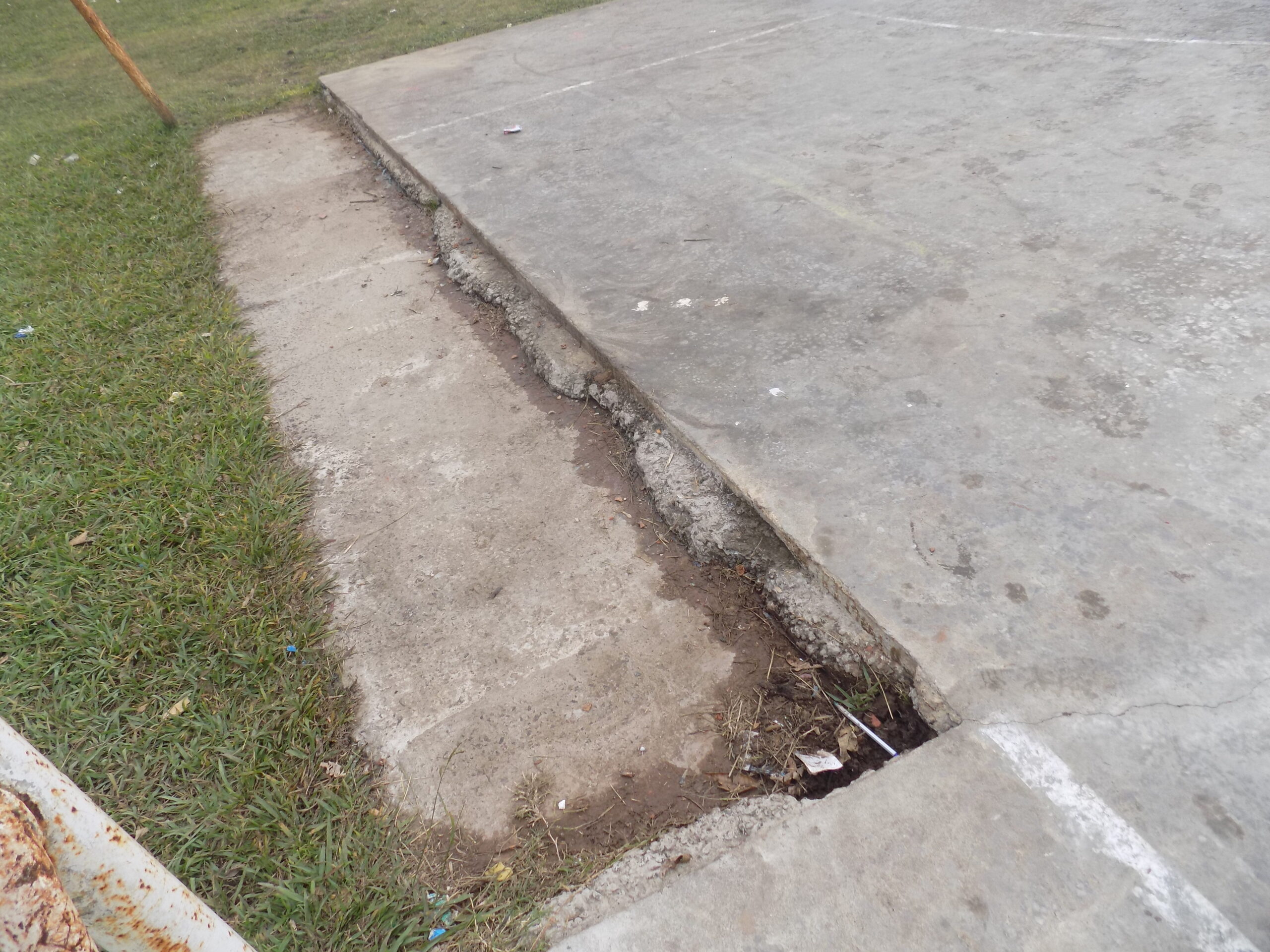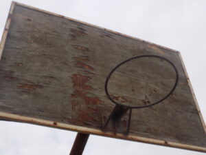 Los parantes que deberían tener un cerco perimetral, casi en su totalidad destruidos, los tableros de los aros de básquet son inexistentes y el piso que comienza su degradación a través de fisuras que empiezan a visualizarse cada vez más.