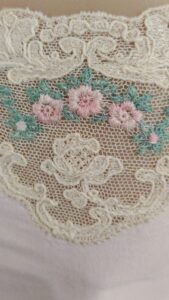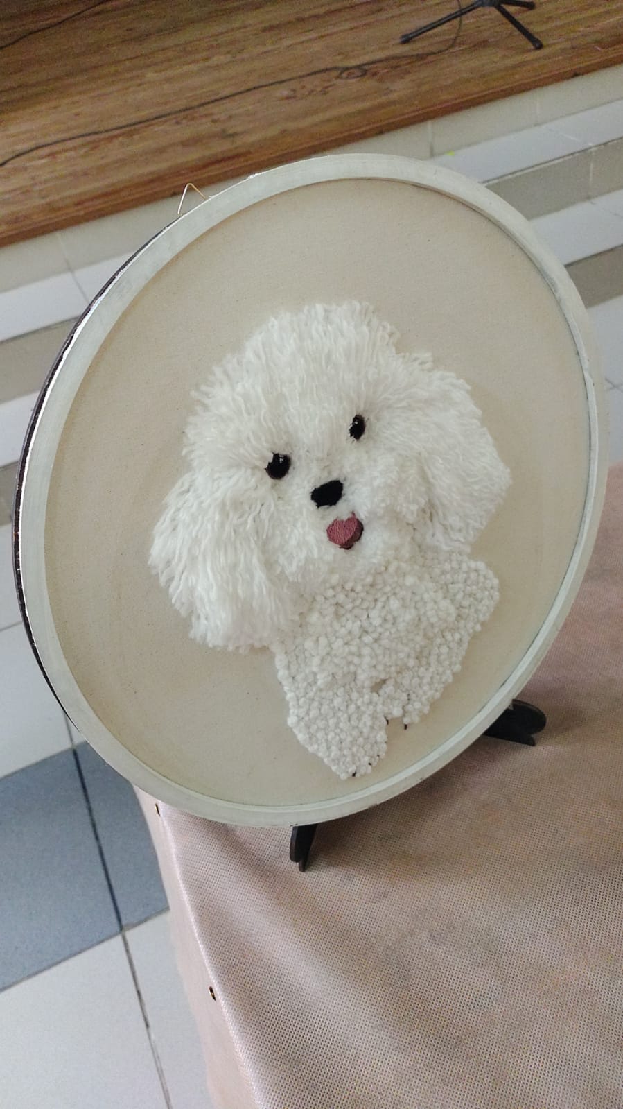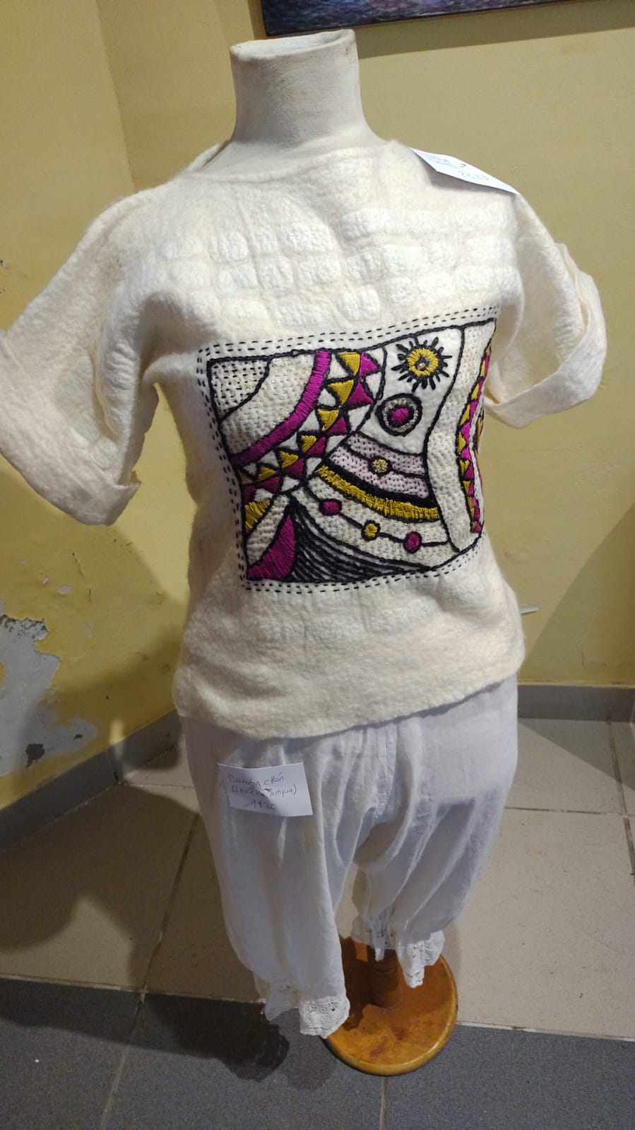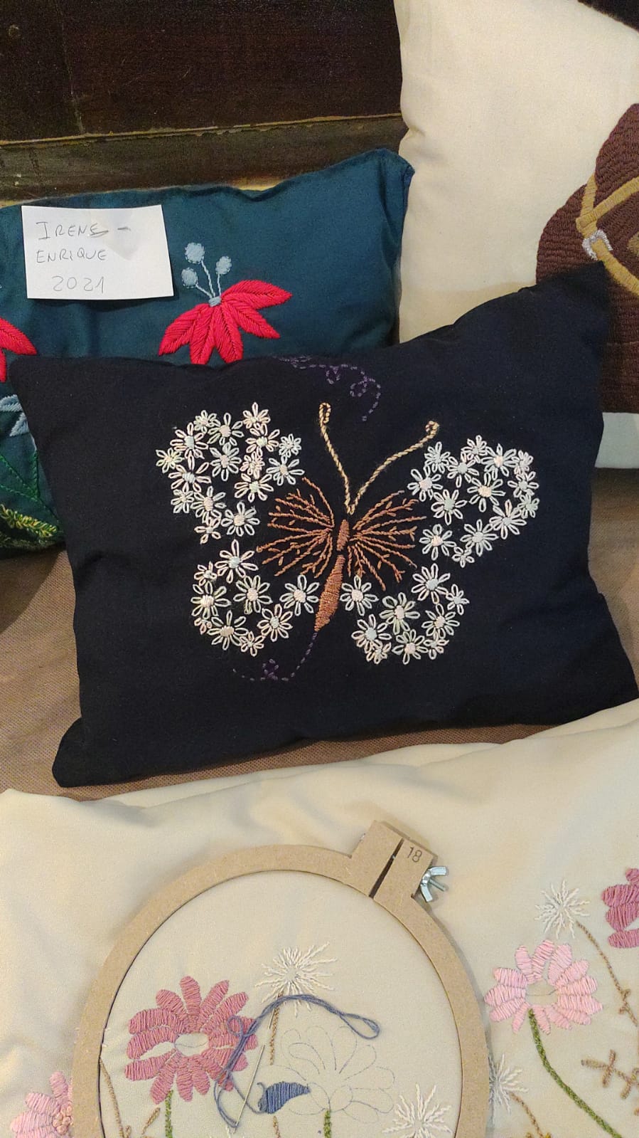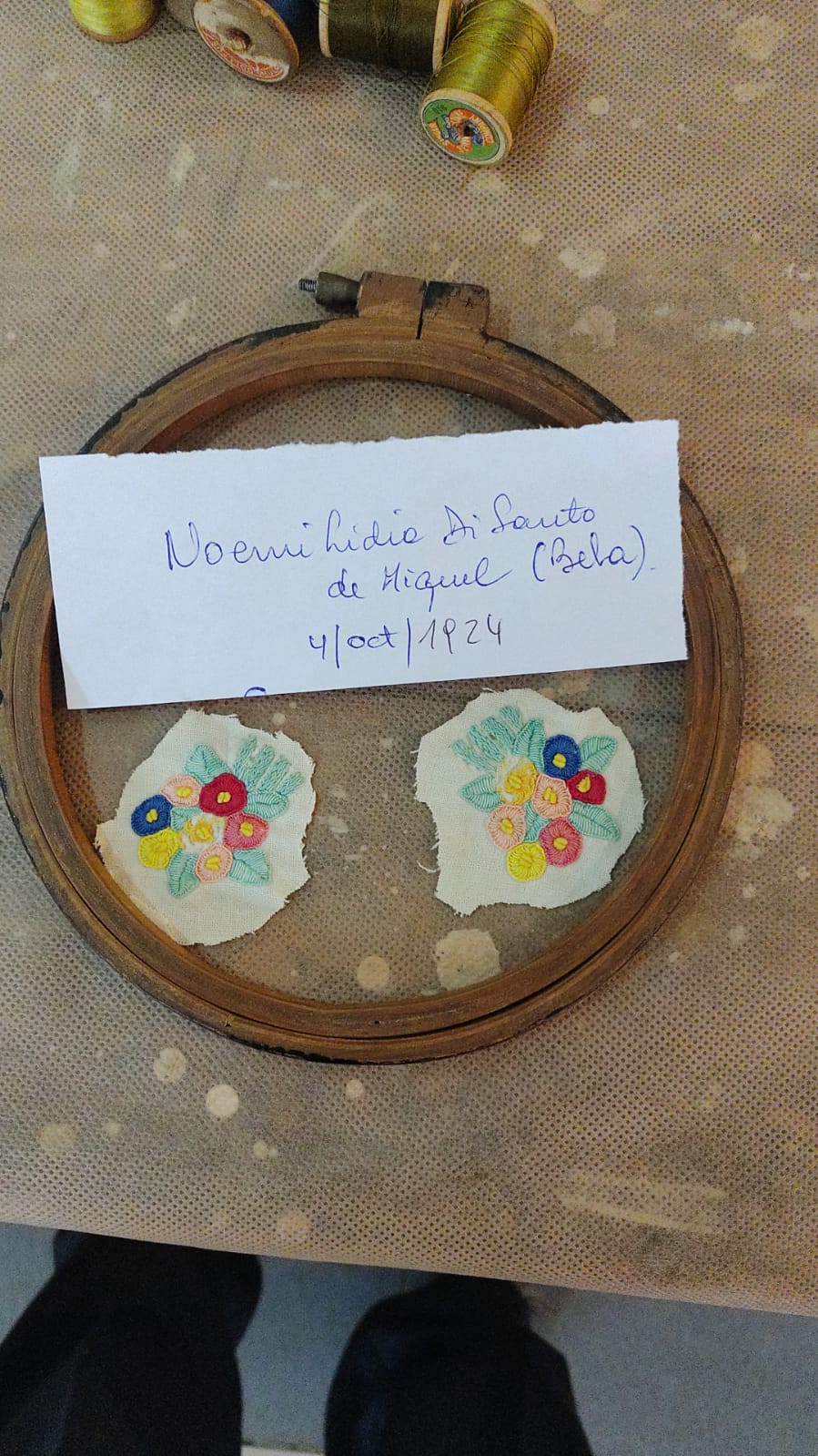 Exquisitos trabajos artísticos de fina confección de todo tipo de bordados sobre diferentes telas, distintos tipos de hilados y agujas, con sus atriles y caballetes que dejaban al descubierto toda la amalgama de diferentes técnicas impartidas por quien conduce los talleres de bordado a través de estos diez años.