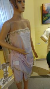 La muestra contaba con trabajos aportados por vecinos de Lobos, que databan de 1908 a 1939 y culminaban con el espectro de los trabajos a través de los años de quienes participaron en los talleres de Elena.