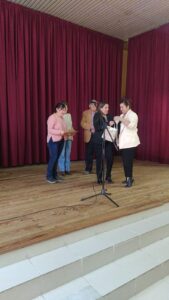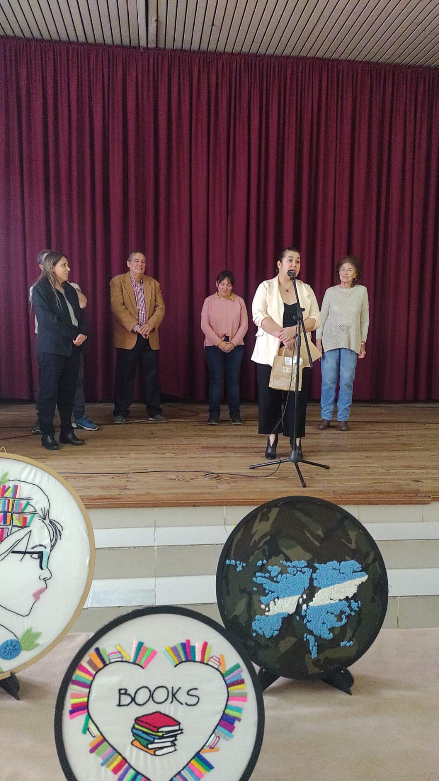 A las 14 horas el salón ya se encontraba colmado de alumnas y los primeros visitantes, cercano a las 15,30, subieron al escenario los integrantes de CD, para realizar un sencillo y emotivo acto por los 10 años de Elena dictando cursos de bordados y otras técnicas.