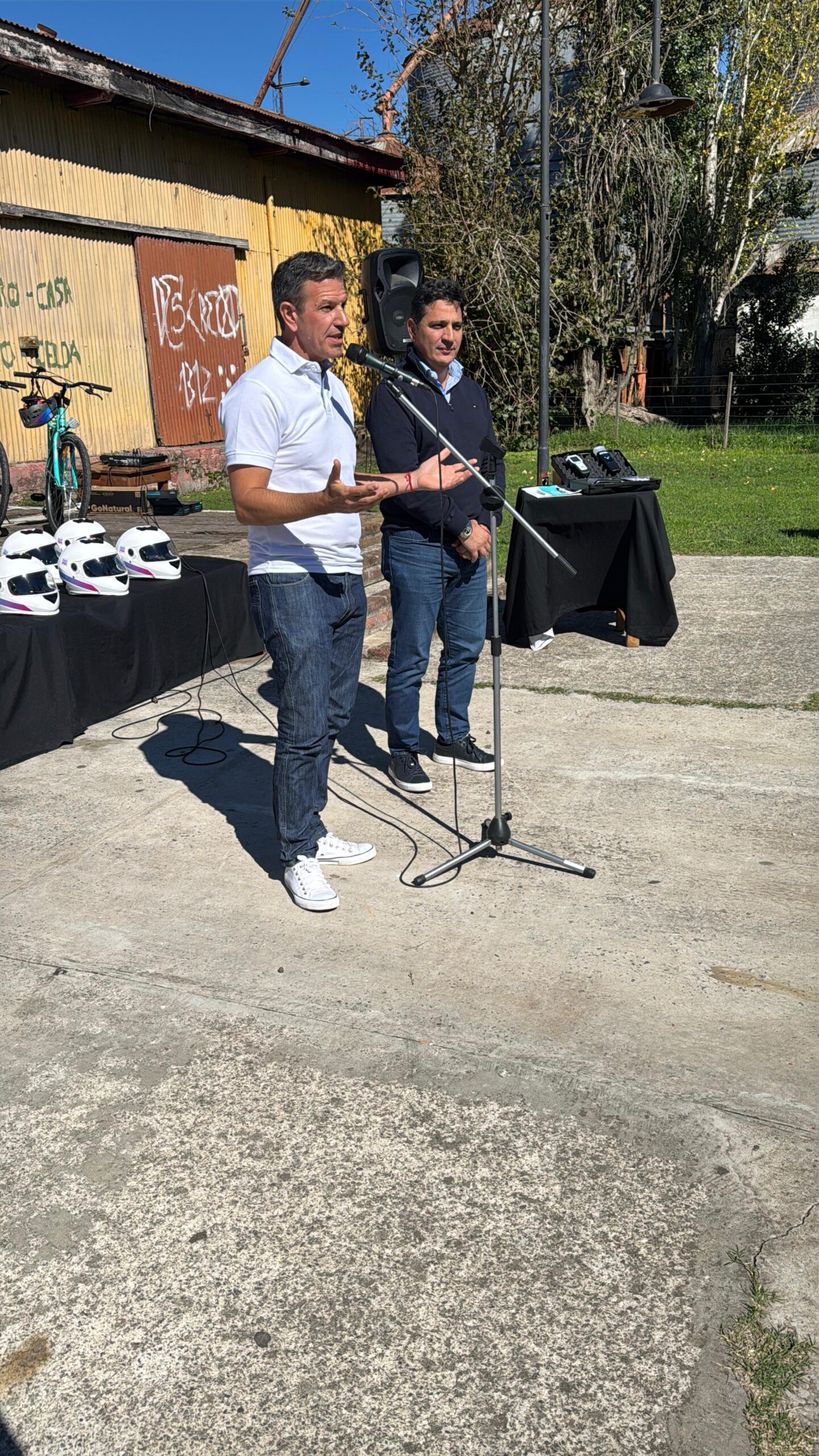 El intendente Sciaini recibió al ministro Marinucci y entregaron bicicletas, cascos y un alcoholímetro en Roque Pérez