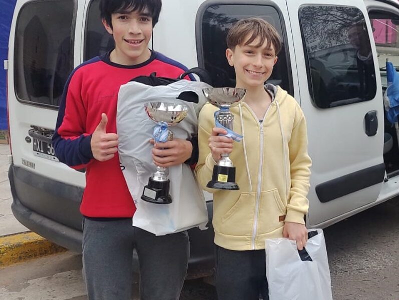 Desbordantes de alegría, los corredores Eros Arena y Bruno Baraventa, ganaron la tradicional competencia.