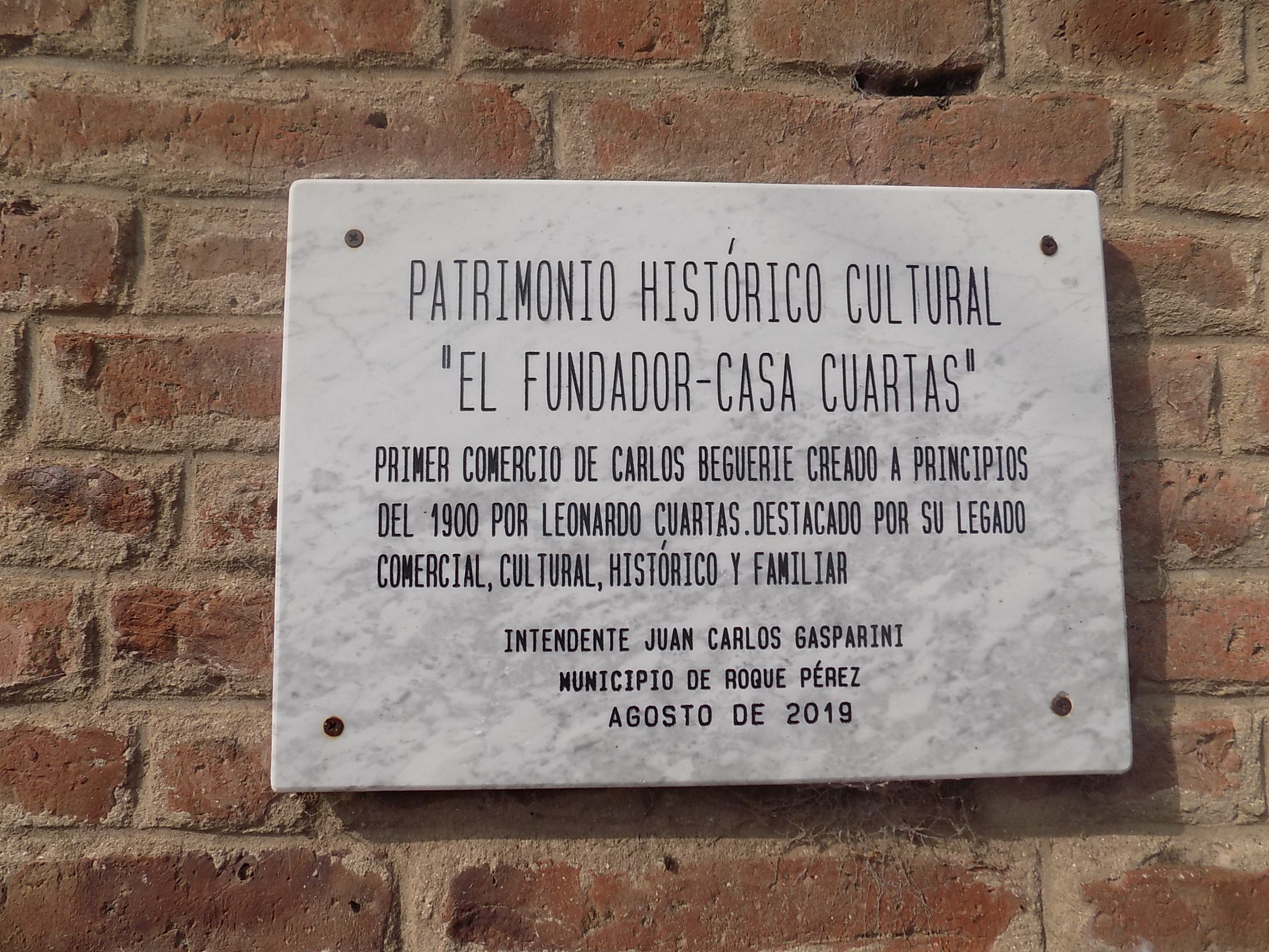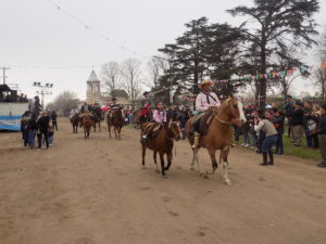 A lo lejos se escucha la banda y el locutor que anuncia el inicio del desfile, apuramos el paso, mientras caminamos vemos placas en algunos frentes que indican la historia del pueblo.