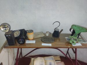 Un tanque de agua en lo que fue la estación del pueblo, en su base de sostén, las chicas de turismo nos reciben y muestran ese Museo con cosas detenidas en el tiempo y estupendamente conservadas.