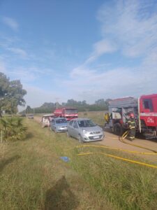 En momentos que el distrito así como buena parte de la provincia y nación se encuentra amenazada por el fuego, estos valientes ciudadanos que arriesgan la vida por nuestra seguridad personal y de nuestros bienes, hicieron u alto, para permitirse festejar.