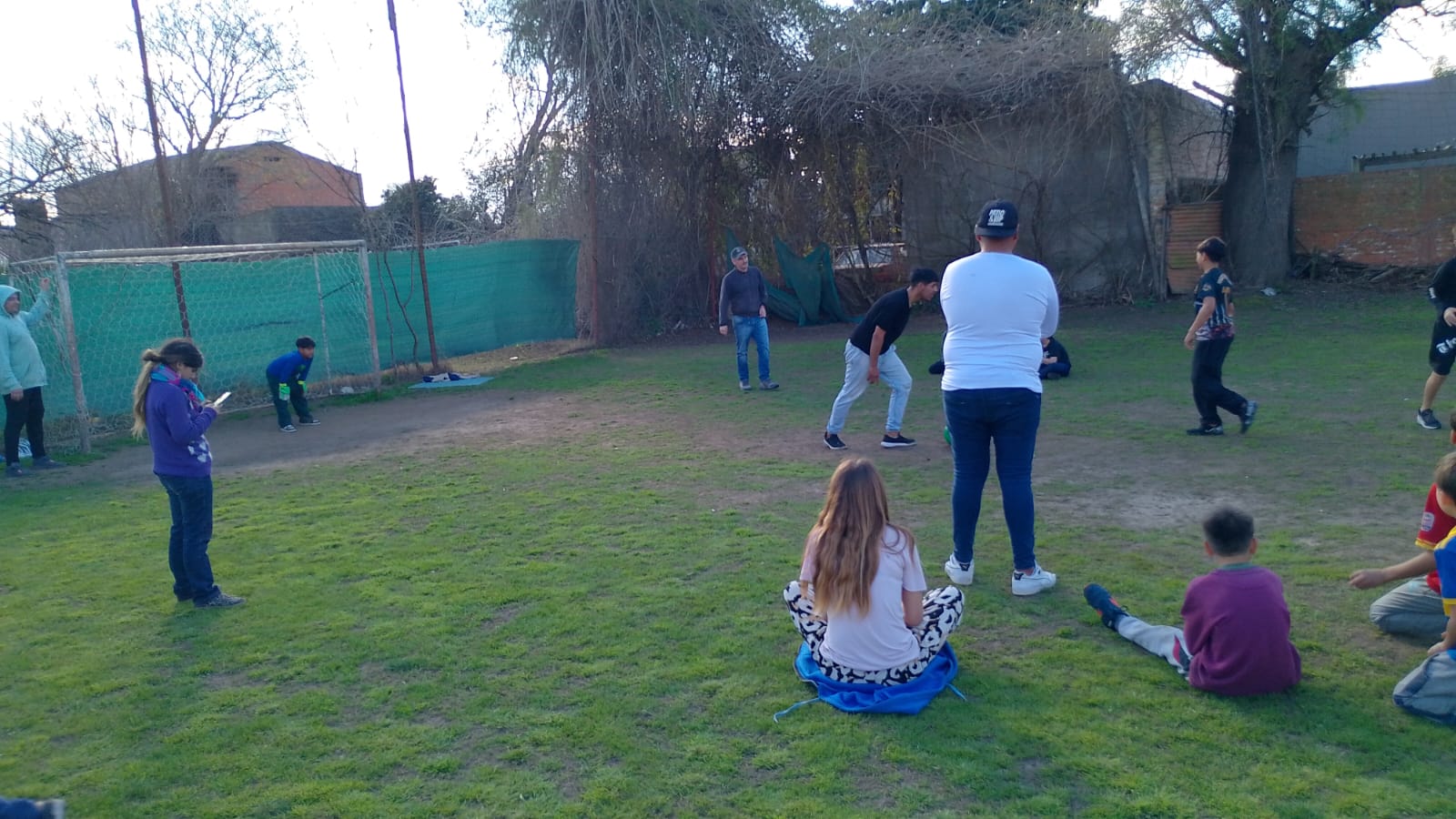 Los integrantes de la familia que componen los Ardiles, posaron para la foto, mientras de lejos sus padres los miraban, todo su entornos enmarcaba las corridas, juegos y, por sobre todo, la inmensa alegría de los pequeños y padres que acompañaban.