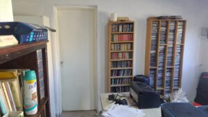 En un día fresco pero con pleno sol, visitamos a Mikito que estaba en su escritorio trabajando y recibiendo llamados de amigos en la nueva sede de su tan querida radio.