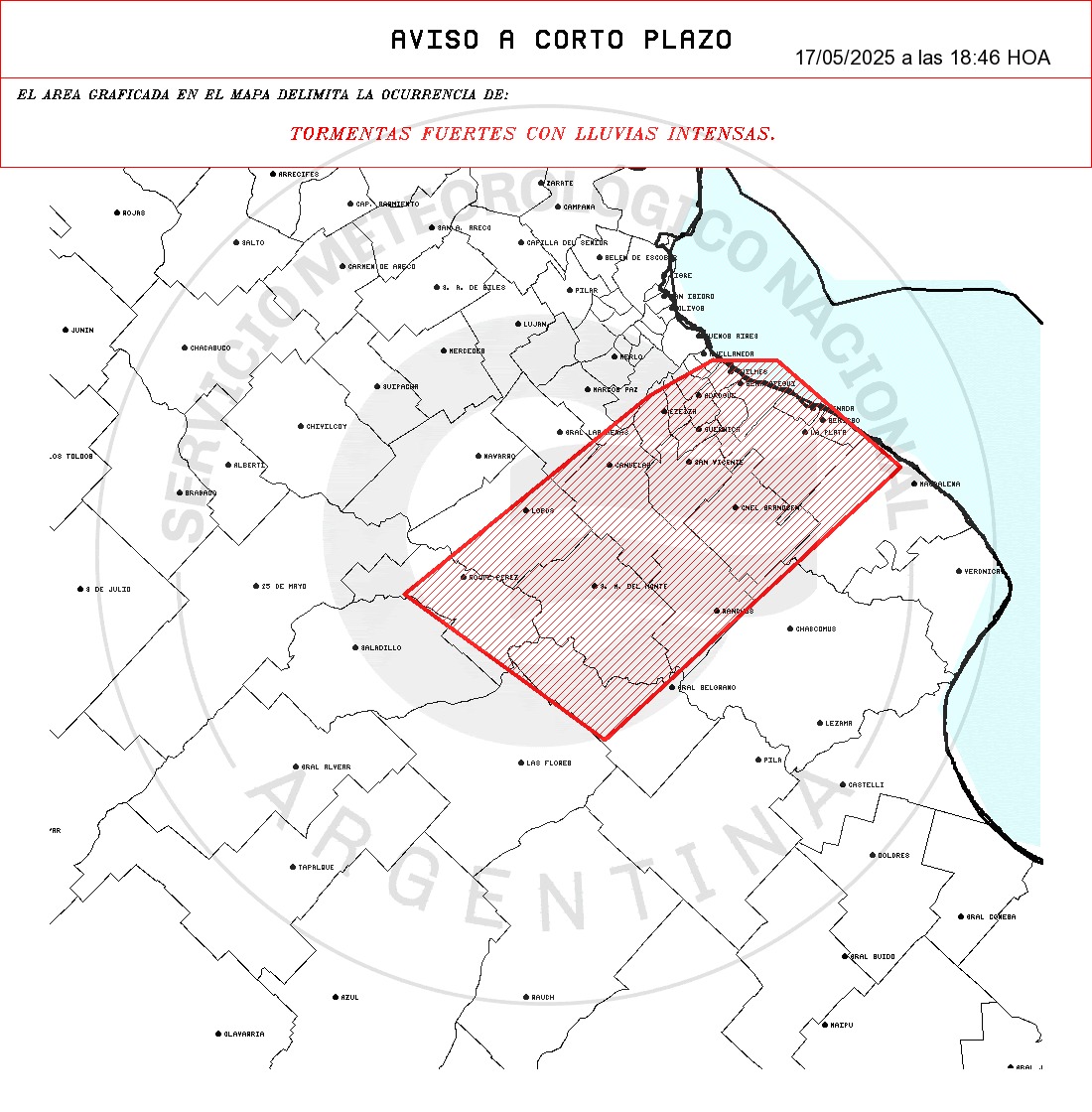 Durante la noche de hoy, los municipios del noreste de la provincia continuarán siendo afectados por lluvias y tormentas de variada intensidad, algunas fuertes o localmente severas. Las mismas estarán acompañadas por abundante caída de agua en cortos períodos, intensa actividad eléctrica, ráfagas que podrían acanzar los 100 km/h y ocasional caída de granizo. Se prevén valores de precipitación acumulada entre 30 y 60 mm durante este período.