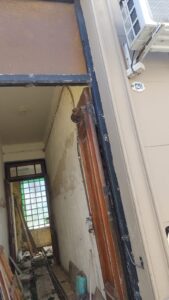 Casi displicentemente este cronista caminaba por calle 9 de Julio cuando vi interrumpido mi paso por una cinta de peligro y, un volquete en el frente del número 120.