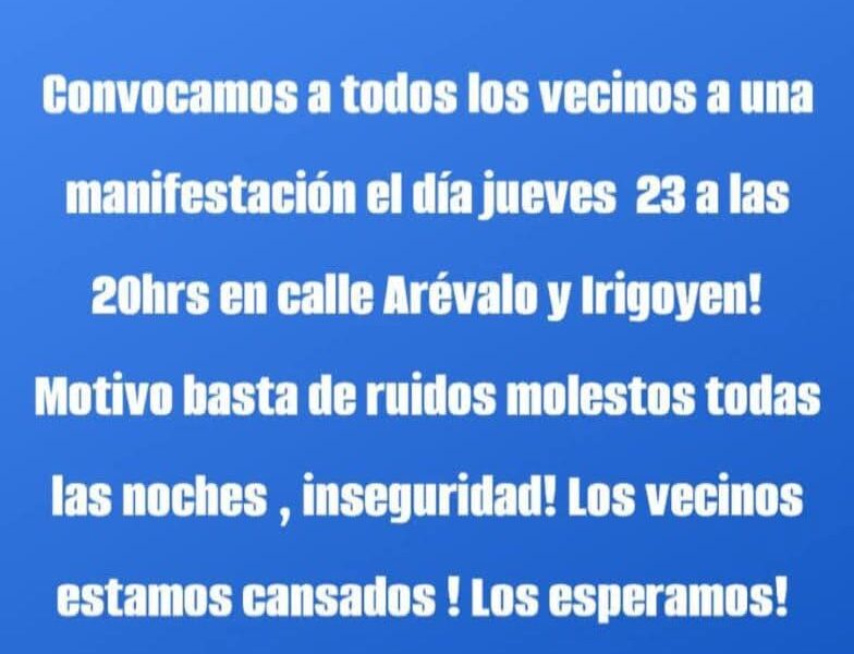En las redes se ha convocado por parte de la ciudadanía a una concentración en calle Arévalo e Irigoyen para este jueves a las 20 hs,