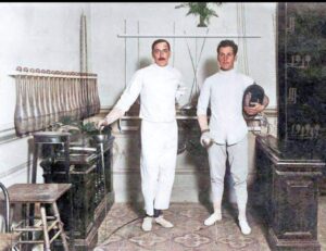 “…En 1924 sucede un hecho que, con el tiempo, adquiriría una fuerte significación en su vida personal. Perón era un destacadísimo esgrimista, durante diez años fue campeón militar y nacional de espada, y había sido convocado para concurrir a los juegos olímpicos de París de 1924. Pero no lo hizo porque el ministro de Guerra negó el permiso solicitado por quien entonces era oficial del ejército.