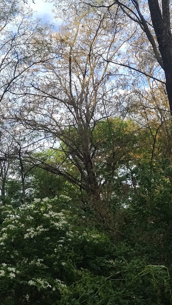 En plena primavera la planta de Moras de la familia fumigada se muestra como si fuera otoño con todas sus hojas secas.