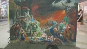 ECP, se detuvo en el Stand de LUIS ELDESTEIN, quien exhibía un impresionante mural con una pintura de arte ruso.