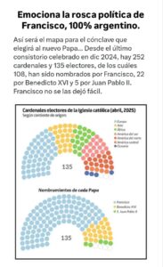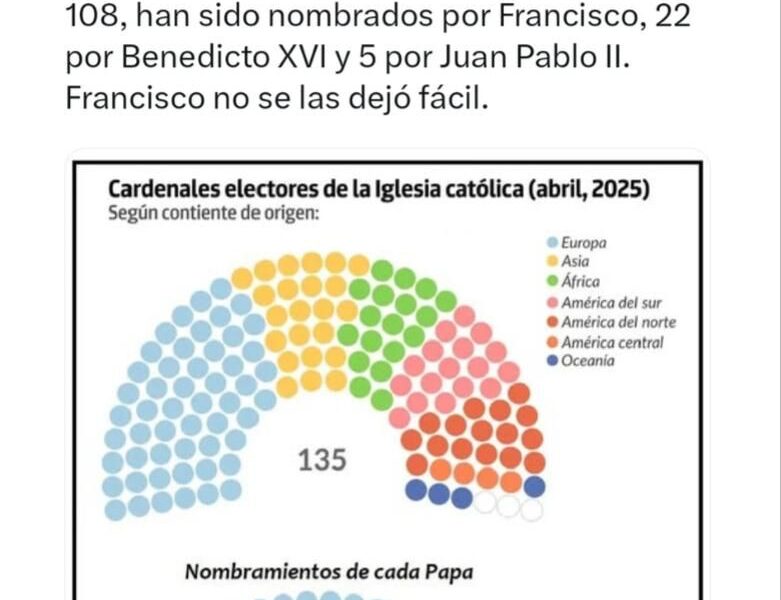 En la parte superior de la ilustración, se puede observar como era el electorado cuando fue electo PAPA y, como es hoy, con los cardenales que fueron nombrados durante su permanencia frente a la Iglesia.
