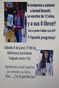 Recordemos que Ismael Barsotti, que en la actualidad tiene 12 años, publicó su primer libro a los 8. En aquel momento, en pleno comienzo de pandemia, no fue posible un encuentro cara a cara con el público. Sin embargo, Ismael siguió escribiendo y hoy ya tiene su octavo libro editado. El primero fue Cuentos de terror, fútbol y etcétera. Luego vendría una colección de cinco títulos para niños en edad preescolar. Posteriormente, llegaría su primera novela, La guerra cuis. El último, que salió a la venta hace poco menos de un mes, es Dragones.