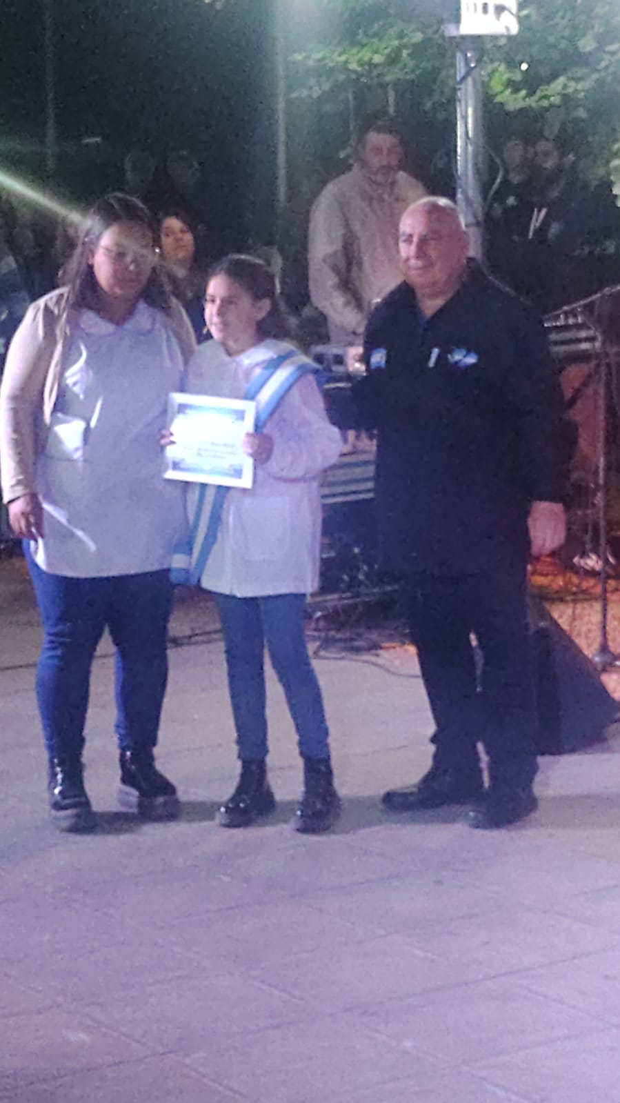 El momento del Himno Nacional Argentino, fue a cargo de la Subsecretaria de Educación, Cultura y Turismo, Eliana Cejas, luego los veteranos entregaron los diplomas a las ESCUELAS QUE RECIBIERON EN CUSTODIA LAS BANDERAS PARA ESTE AÑO