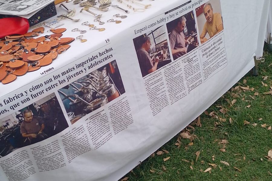 Le pregunte Cómo era que no estaba en un evento tan importante como el festival del asado y, más aún con un producto como sus mates, reconocidos en buena parte de la provincia. Se podía observar una nota a dos páginas de un semanario local, hablando sobre sus aptitudes que. orgullosamente engalanaba su stand.