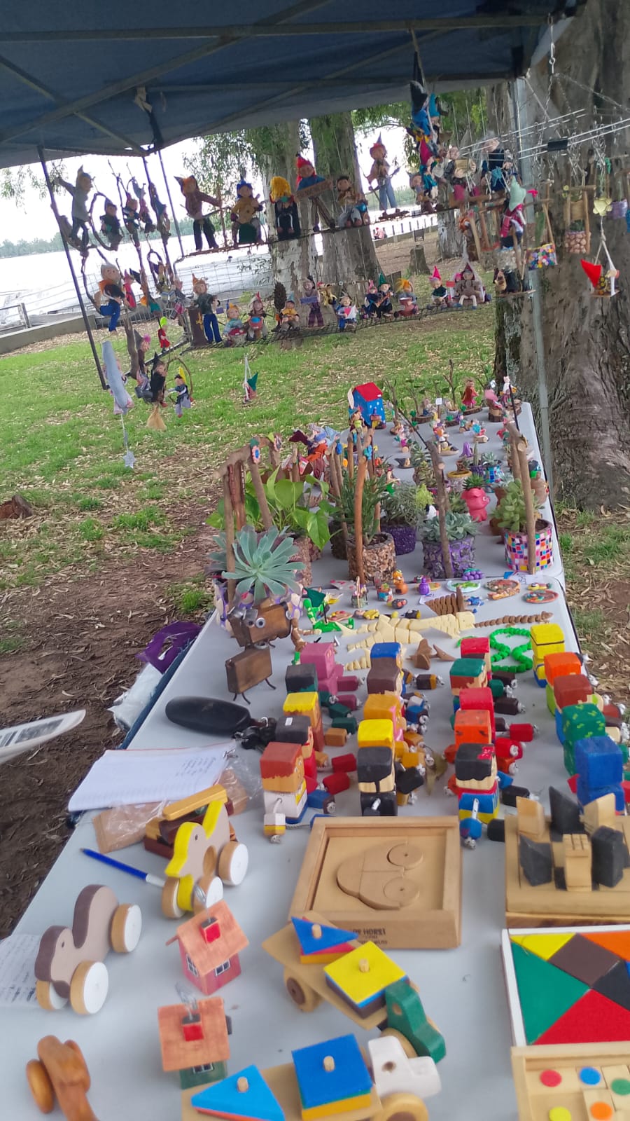 Este cronista se acercó al primer puesto y se llevó la sorpresa. Allí estaba uno de los artesanos más reconocidos de Lobos, por su elaboración de mates de primerísima calidad, incluso algunos con insertos de plata y alpaca. Más allá de conocer su trabajo, me sorprendió su estadía en la Laguna, ya que fue uno de los primeros que comenzó a trabajar por el regreso a su lugar de origen, la Plaza 1810.