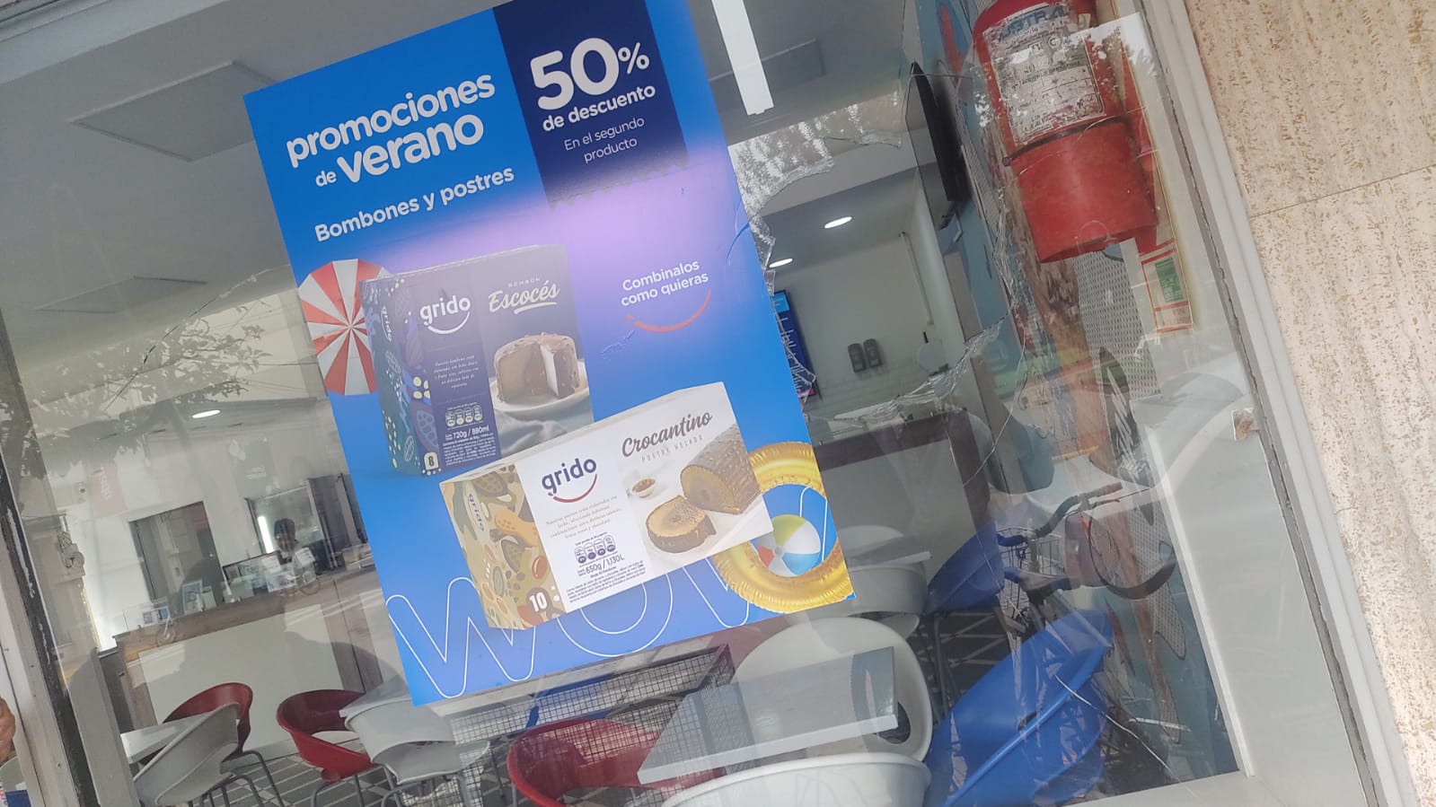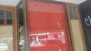 Las vidrieras de Grido y La vaquería amanecieron rotas a piedrazos, hablan de una camioneta que recorrió la ciudad rompiendo alguna más.
