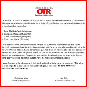 Página de inicioActualidadLOS TRABAJADORES DE EXTRACCIÓN RADICAL, SE EXPRESAN Actualidad Culturales Información General Política SOCIEDAD LOS TRABAJADORES DE EXTRACCIÓN RADICAL, SE EXPRESAN Llega a nuestra mesa de trabajo, un comunicados de los ttrabajadores Radicales agrupados. Navegación de entradas Entrada anteriorLA MULTISECTORIAL LOBOS Y EL COLEGIO FASTA, INVITAN A UN EVENTO SOBRE EL INSTITUTO ANTÁRTICO Entrada siguienteCONCEJO DELIBERANTE, CITARÍAN A RUSTOM También podría gustarte Actualidad PARTE DE PRENSA DE POLICIA COMUNAL LOBOS El Cuarto Poder 5 junio, 2023 Política ENTREVISTA A PAULO CIRIONE SOBRE LAS DIFERENCIAS EN LA EJECUCIÓN DE PARADAS SEGURAS. El Cuarto Poder 17 mayo, 2023 Actualidad «SI HAY UNIDAD, ESTAREMOS DONDE SEA NECESARIO», DIJO SILVANA NICOLINI El Cuarto Poder 27 junio, 2025 Actualidad JUNTO A LOS VETOS DEL GARRAHAN Y UNIVERSIDADES, MILEI SE INCENDIA PARA OCTUBRE El Cuarto Poder 11 septiembre, 2025