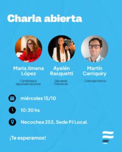 Este miércoles 15 de octubre en la sede del Partido Justicialista, en calle Necochea 236, se presenta Jimena López, candidata a Diputada Nacional.