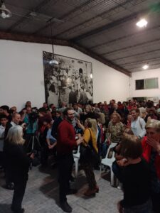 Para las 20 el público comenzó a ingresar y colmar todos los espacios, fue una ola sin cesar, en esos instantes ingresó Gustavo Sobrero saludado por un público enfervorizado, no llegó a sentarse, y una estridente batucada ingresó tomando posición sobre el final del salón. La fiesta estaba a punto de comenzar.