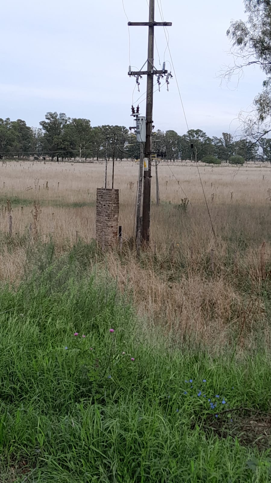 En el km 108 de la ruta provincial 205, en un campo, se incendió un pilar de servicio eléctrico.