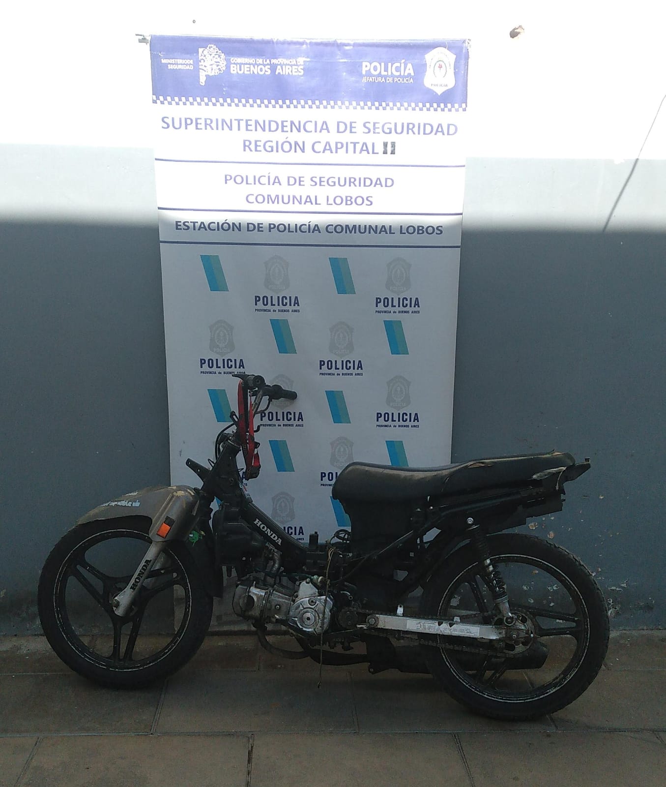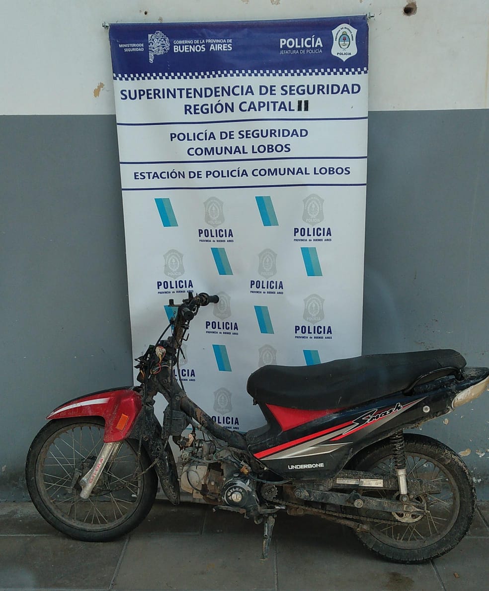 Personal de la Estación de Policía Comunal Lobos Seccional Primera, en el transcurso del fin de semana, en horas de la madrugada, procedió a interceptar en la via publica un motovehiculo marca Gilera modelo Smash 110 c.c., sin dominio colocado de color roja y negra, en la cual se desplazaba un masculino de 16 años domiciliado en Empalme partido este medio, lográndose establecer que el rodado poseía Pedido de Secuestro Activo requerido por la Comisaria de Roque Perez, por el delito de HURTO AGRAVADO MOTOVEHICULO. Ante tal eventualidad, se incoan actuaciones judiciales por el delito de ENCUBRIMIENTO, dando intervención a la Fiscalía del Fuero de Responsabilidad Penal Juvenil de La Plata. Se efectúa incautación del rodado, y se procesa al menor en marco de la causa de mención y posteriormente es restituido a su representante legal.-