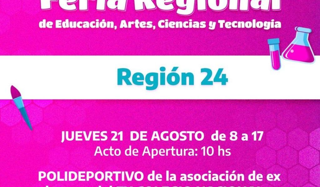 La jefatura Distrital de Educación a cargo de la Profesora Marta Amorena, informó que, por cuestiones climáticas, la Feria Regional, se suspende y pasará a desarrollarse el día 28 de agosto.