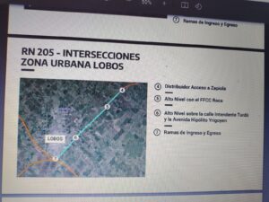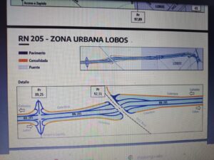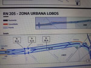 En la zona urbana de Lobos la Autopista cruza elevada con 2 Puentes sobre la calle Intendente Turdó y la avenida Yrigoyen, se construirán ramas de ingreso y egreso a ambos lados de la autopista para conectar esta última con las colectoras.