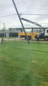 Pasadas las 13,52 hs, no se advierten cuadrillas que comiencen con el levantado de los postes de media tensión.