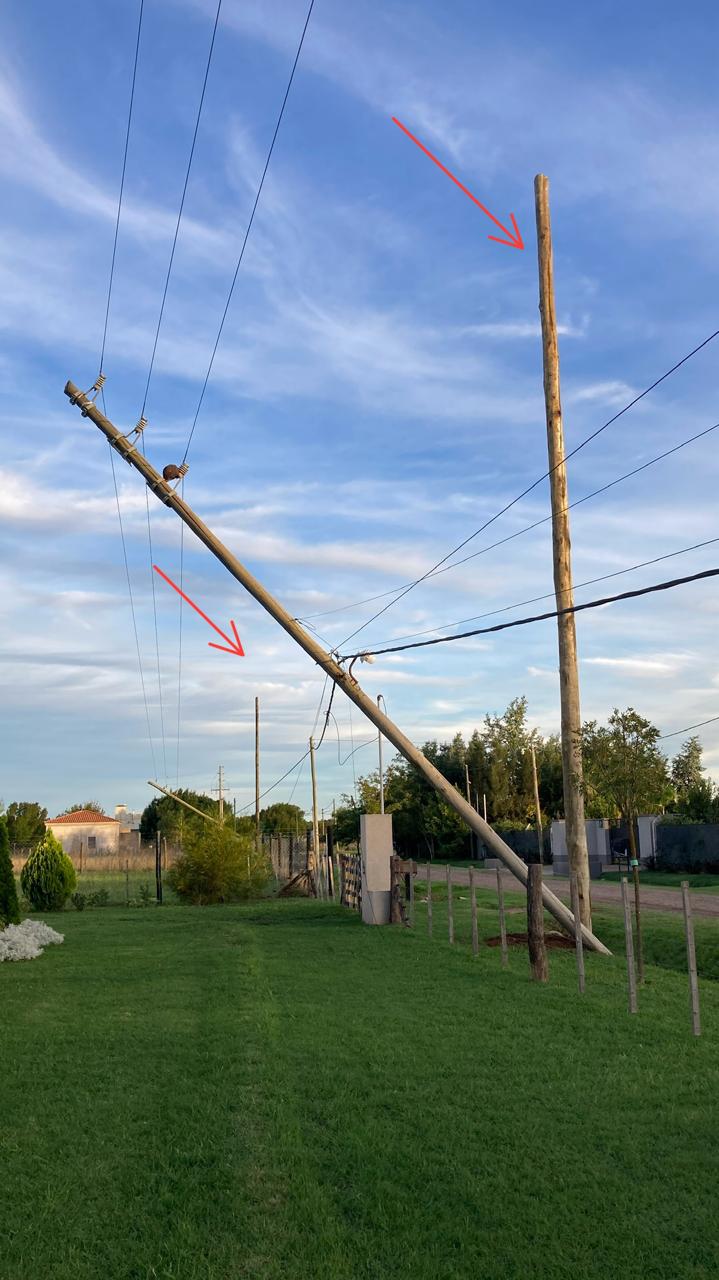 A partir de las 5,40, se produjo un corte de luz, que en el Barrio del Carmen, persiste al momento, esto sucede a raíz de la caída de postes de media tensión, al menos dos en calle Los pinos a la altura del 500 y otro en calle Los jilgueros entre la Ruta 41 y calle los pinos.