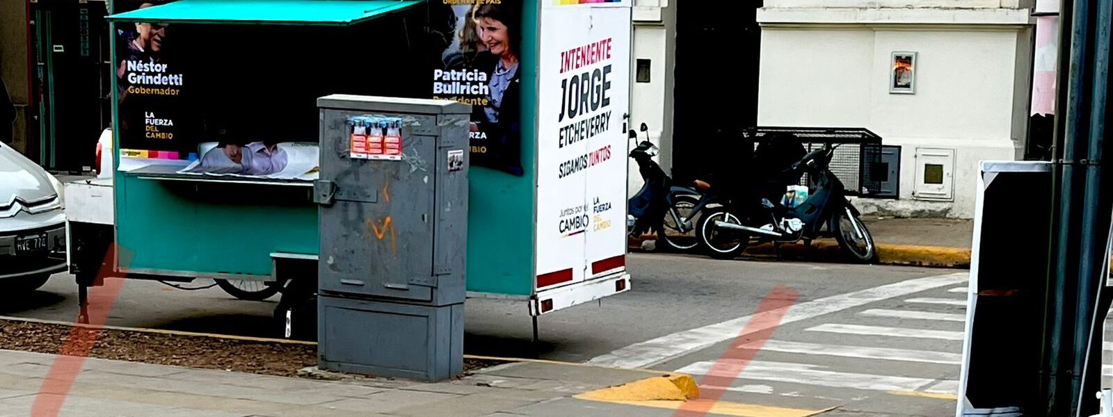 Más allá de la profusa propaganda publicitaria de campaña que ostentaba este móvil, la pregunta que se hacían algunos ciudadanos que circulaban era, «por que no lo retiraban». Algún conocido, tal vez? .