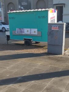 En la mañana de hoy se pudo ver un carro de comidas estacionado en la intersección de calle Bs.As. y 25 de mayo.
